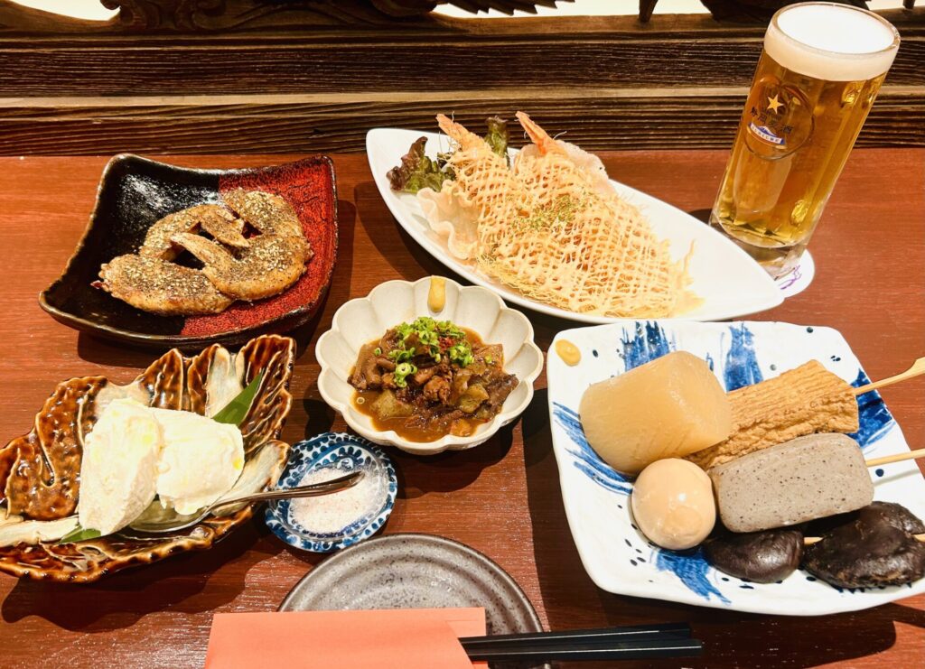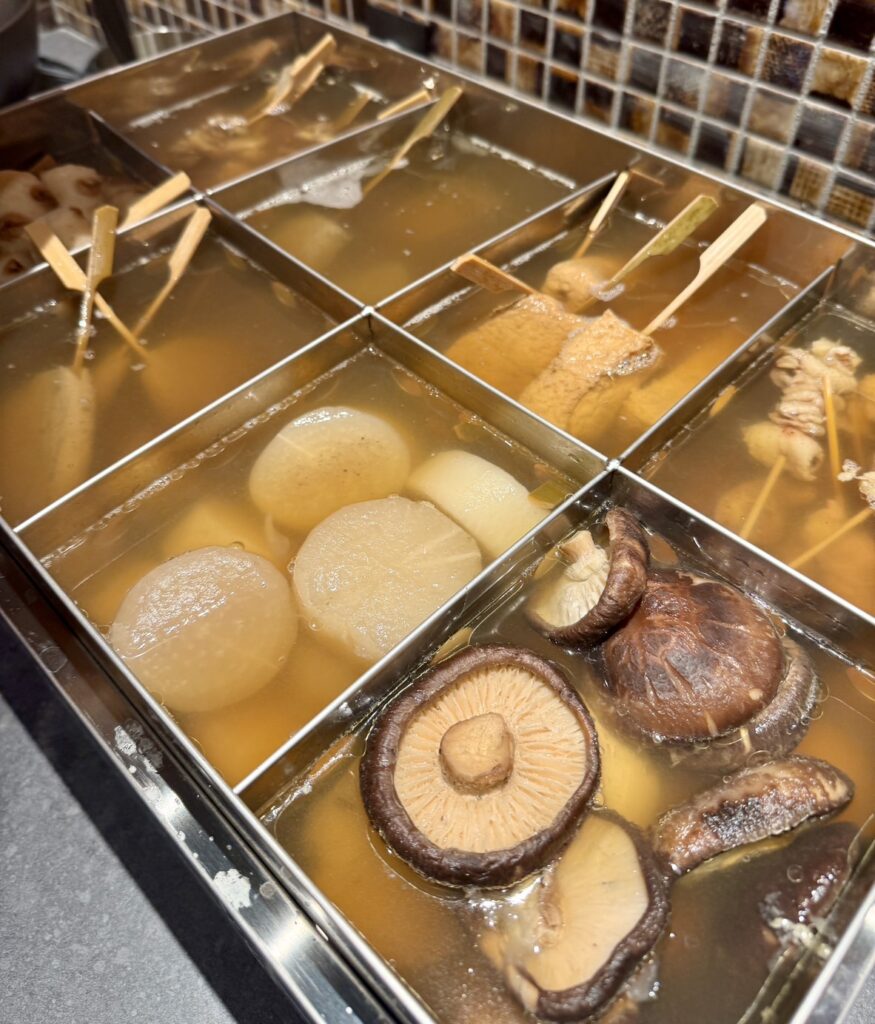 대표 메뉴인 도테니(도테니)는 처음부터 직접 만들어 내고, 오뎅은 진한 맛이 많은 메뉴들 속에서 균형을 고려해 일부러 담백한 간사이 스타일로 만들어 재료가 크고 푸짐한 느낌을 줍니다.